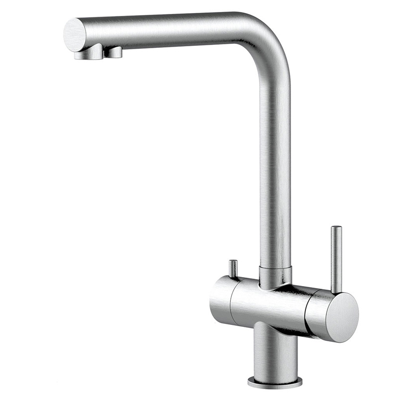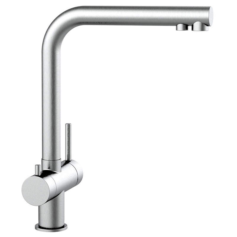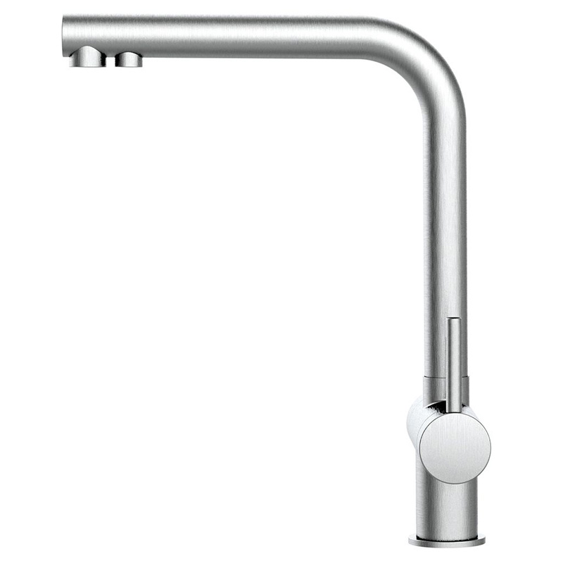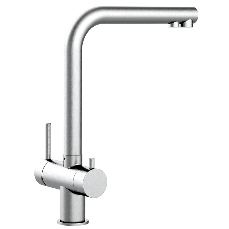 Gefertigt aus massivem, mattem oder glänzendem Edelstahl ist die Atessa robust, rostfrei und pflegeleicht. Sie eignet sich perfekt für den Anschluss an Einbaufilter und ist zudem optional auch für Sprudelanlagen erweiterbar (vierter Anschluss vorhanden).