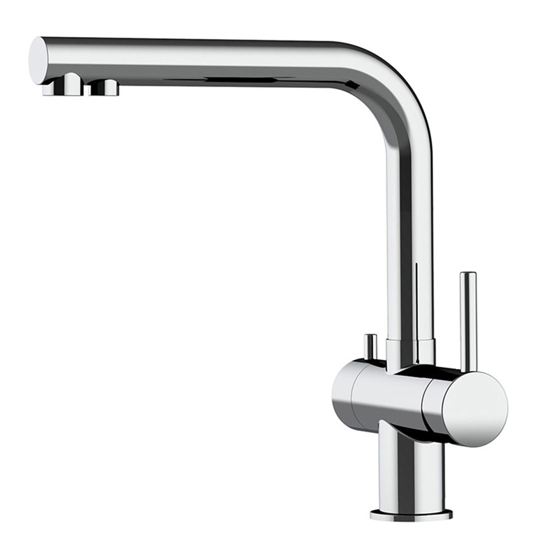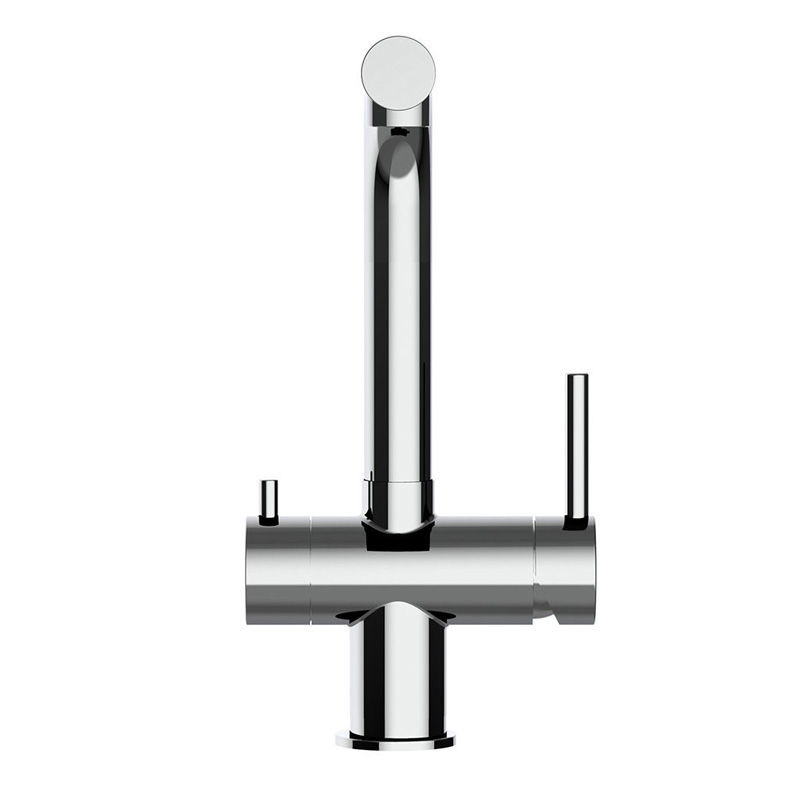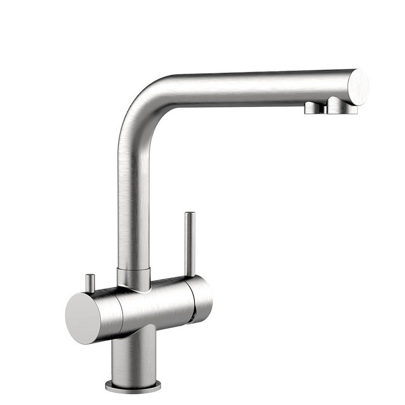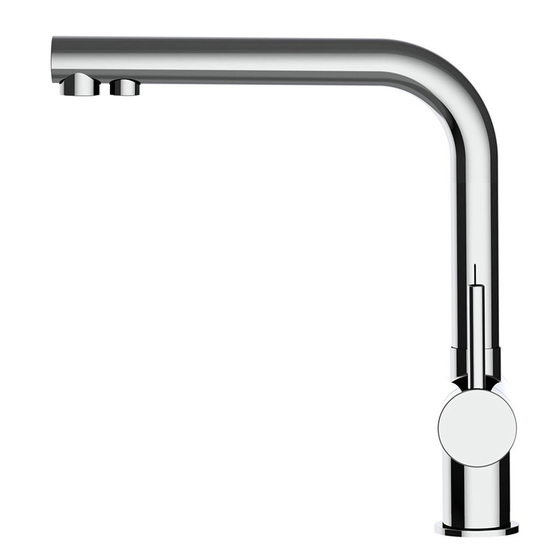 Die 3-Wege-Armatur Atessa überzeugt durch ihr modernes, kompaktes Design und ihre hochwertige Verarbeitung aus glänzend poliertem oder matt gebürstetem Edelstahl. Sie kombiniert stilvolle Optik mit praktischer Funktion: Warm-, Kalt- und gefiltertes Trinkwasser lassen sich bequem über nur eine Armatur entnehmen – ganz ohne zusätzliche Bohrung. Ideal für alle, die Komfort, Qualität und Design in der Küche schätzen. Die niedrige Bauform macht sie perfekt für Spülen mit wenig Freiraum nach oben.