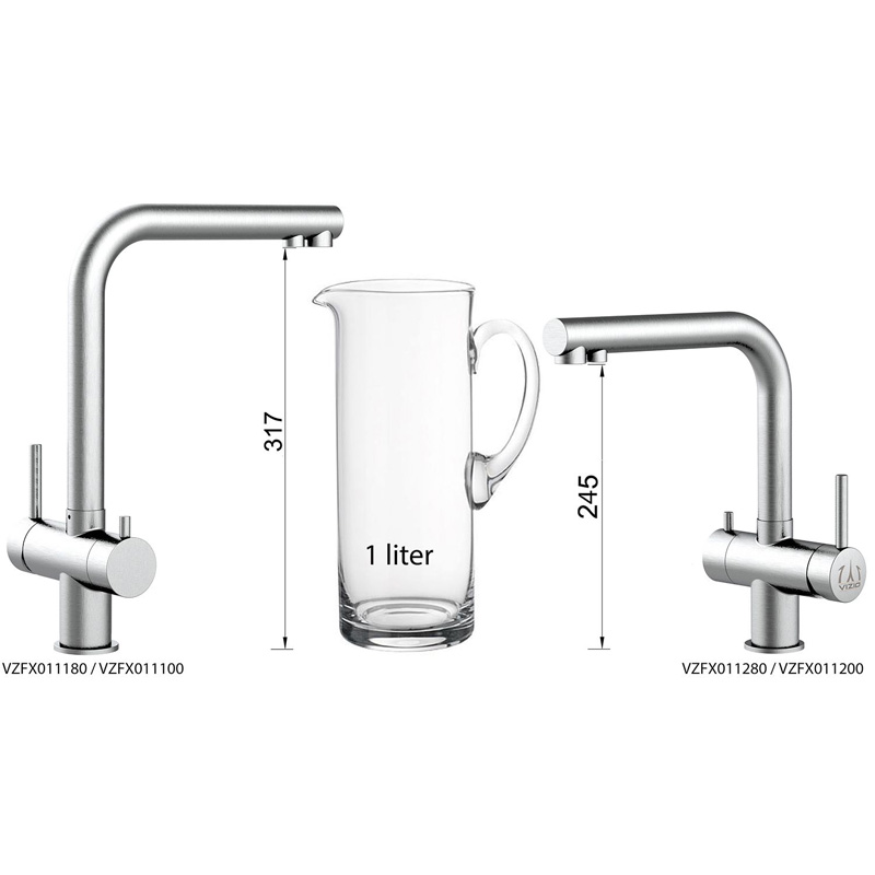 | Komforteigenschaften | Auslauf um 360° schwenkbar, Fixierset "FIX & LOCK" zur festen Montage auf der Spüle, getrennte Regler und Ausläufe, Keramik-Kartuschen für eine lange Lebensdauer |