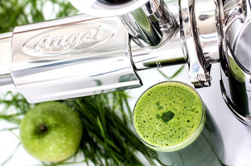 Angel Juicer der beste Entsafter für Weizengrassaft mit grünem Apfel