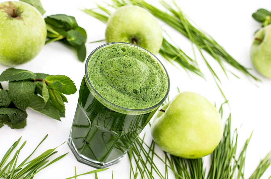 Weizengrassaft mit Minze und Apfel – der Kaffee-Ersatz