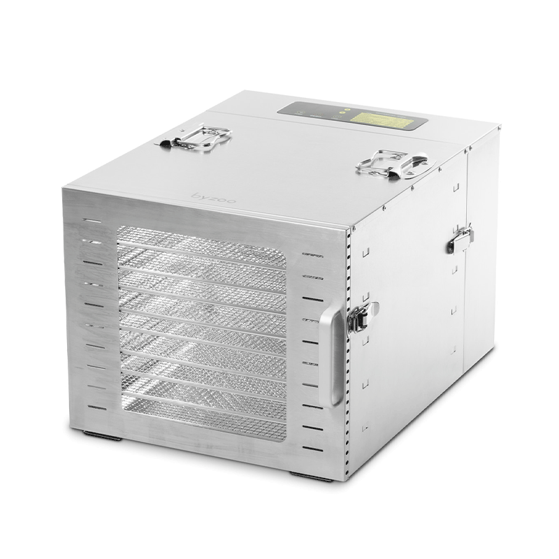 Das Byzoo Dörrgerät DH03 ist der große Bruder des Dörrgerätes DH02. Es ist im Gegensatz zu seinem Vorgänger größer und hat 10 Einschübe, sodass seine Trocknungskapazität enorm ist.