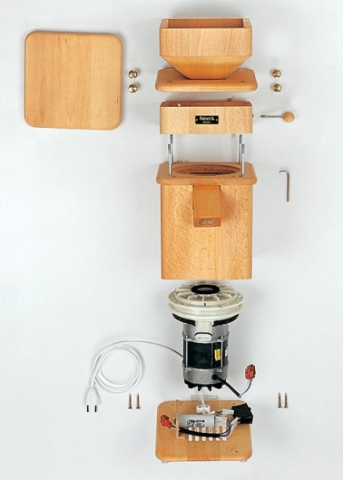 Die Hawos Mühle 1 Getreidemühle wird aus massiver Buche handwerklich perfekt verarbeitet, wobei die einzelnen Module geschreinert und mit der Modultechnik zusammengeführt werden. Das Buchengehäuse wurde mit Leinölfirnis behandelt. Wie alle Hawos Getreidemühlen überzeugt auch die Hawos Mühle 1 durch ihren leisen Drehmoment.