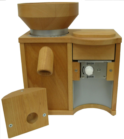 Die Komo Duett 200 ist auch mit Wechselmahlwerk erhältlich. Empfehlenswert für Familien wo eine Person an Glutenunvertäglichkeit oder Zöllakie leidet. Das Mahlwerk kann dann einfach ausgetauscht und glutenfreies Getreide gemahlen werden. Das Wechselmahlwerk ist auch für das Mahlen von Gewürzen gut geeignet, da Gewürze ätherische Öle enthalten, deren starker Eigengeschmack vom Mehl aufgenommen werden kann.