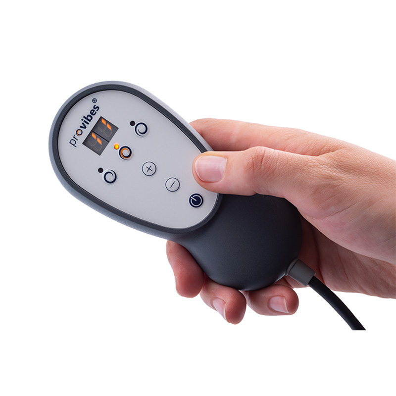Die mitgelieferte Fernbedienung ermöglicht eine komfortable Steuerung aller Funktionen sogar während der Anwendung durchzuführen. So lässt sich das provibes® BASIC jederzeit flexibel an Ihre Bedürfnisse anpassen, ohne dass Sie Ihre Position verändern müssen.