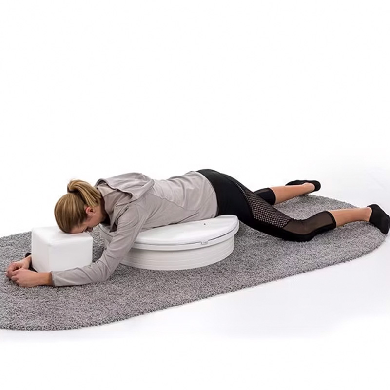 Für tiefgehende Entspannung und sanfte Mobilisierung des Rumpfs, insbesondere bei Schmerzen oder erhöhter Verspannung. In Kombination mit Faszienrollen oder -drückern lässt sich das Faszientraining intensivieren. Das ist allerdings nur für geübte Anwender und nach Rücksprache mit Fachpersonal zu empfehlen. - In Bauchlage (11–14 Hz):