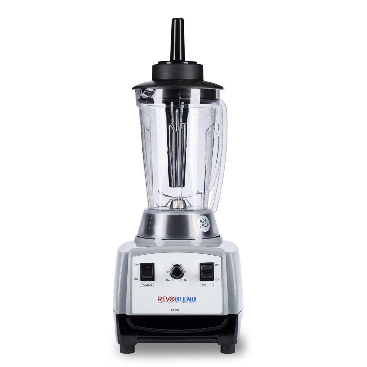 Der Revoblend 390 ist ein Standmixer mit über 1000 Watt und daher eher für kleine Haushalte geeignet. Sowohl Trocken- als auch Nassgut lässt sich mit RB 390 zerkleinern. Die 6 Edelstahlklingen können mit einer Geschwindigkeit von bis zu 32.000 Umdrehungen pro Minute bewegt werden.