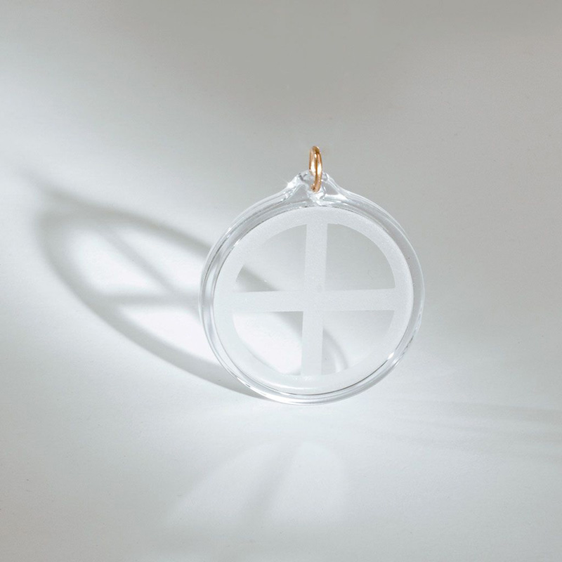 Dank seines geringen Gewichts (nur 10 g) und der flachen Form (5 mm hoch, 30 mm Durchmesser) lässt er sich angenehm im Alltag tragen, etwa an einem Lederband, einer Kette oder direkt in der Kleidung.